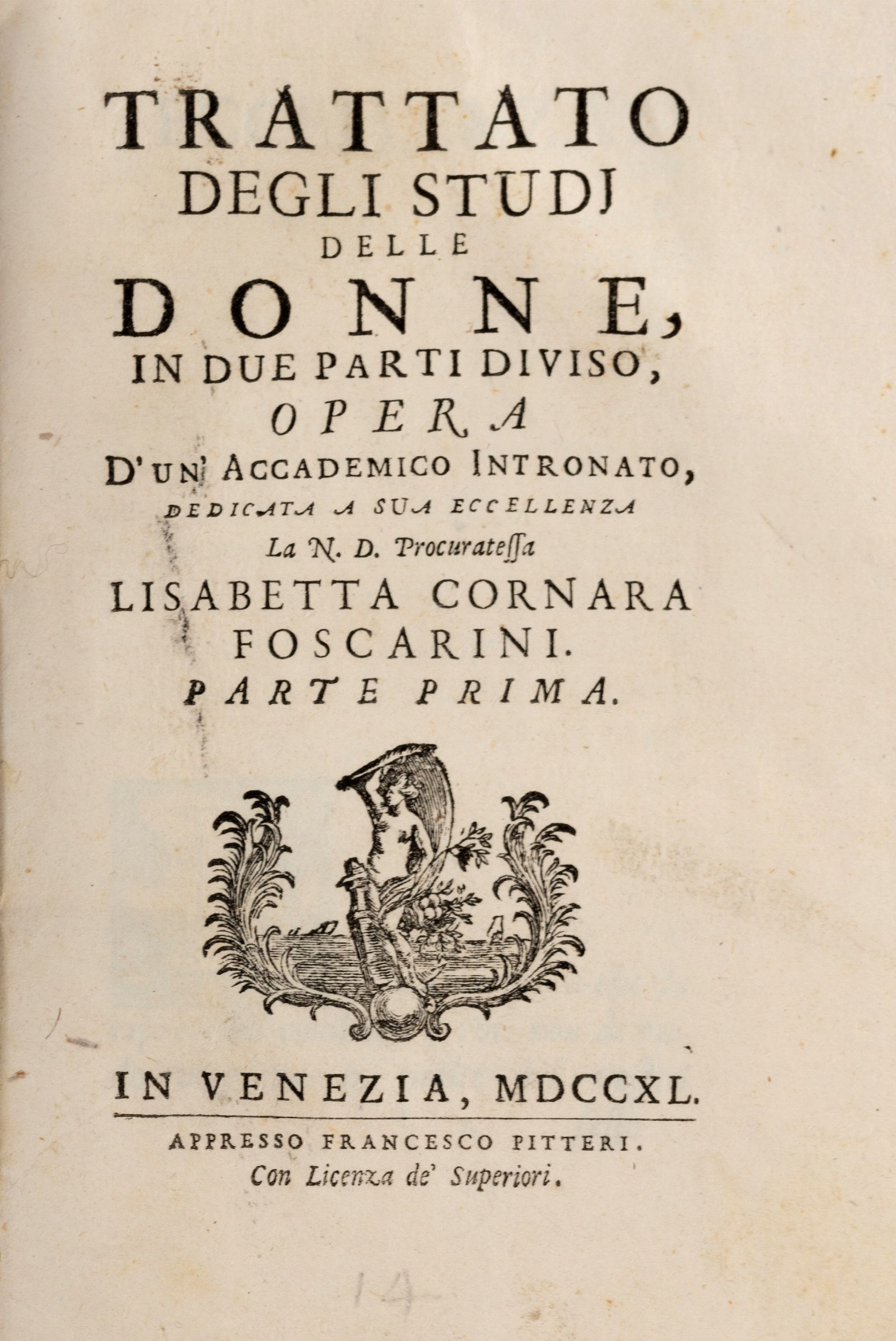 Venezia, Francesco Pitteri, 1740. In 8°. Solo la parte prima (di 2). Marca al frontespizio, iniziali incise, lievi fioriture, legatura coeva in pergamena, titolo manoscritto al dorso, difetti al dorso.