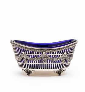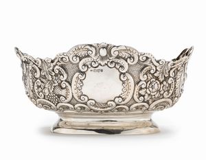 in argento, Peso g 927,00 cm 12,00x18,00-23,00x31,00 città di Sheffield, 1872 interamente traforati con decoro [..]