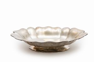 in argento, Peso kg 1,175 cm 33,00x47,00x10,00 XX Secolo di forma ovale, con bordo polilobato.