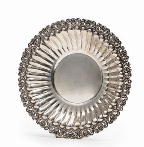 in argento, Peso g 417,00 cm 30,00 Italia, XX Secolo di forma tonda, corpo a baccellature, profilo con decoro [..]