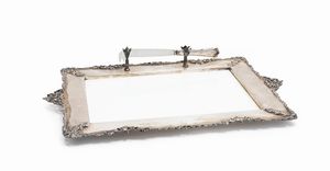 in argento, Peso netto kg 1,065 cm 46x29 Italia, XX Secolo di forma rettangolare, bordo cesellato, con coltello [..]