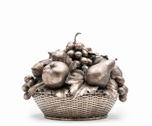 in argento, Peso kg 1,250 cm 27,00x23,00 XX Secolo parte inferiore a cestino e parte superiore decorata a foglie [..]