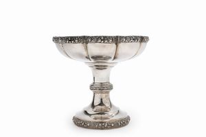 in argento, Peso kg 2,220 cm 37,00 XX Secolo rotondi e polilobati con decoro sbalzato a conchiglie e fiori.