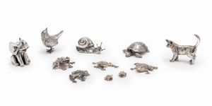in argento 925, Peso lordo g 390,00 (comprensivo delle pietre dure e inserti non in argento) cm 4,00-10,00 Italia, [..]