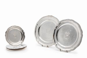 in argento, Peso kg 1,931 cm 28,00-31,00 Italia, XX Secolo lisci con profilo polilobato, al centro stemma [..]