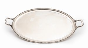 in argento, Peso kg 4,600 cm 45,00x73,00 Inghilterra, inizi XX Secolo di forma ovale, a due manici, con profilo [..]