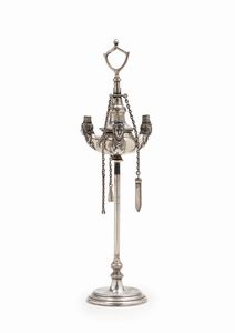 in argento, Peso g 299,00 h cm 32,00 Firenze, metà XIX Secolo base rotonda, con profili a cariatidi