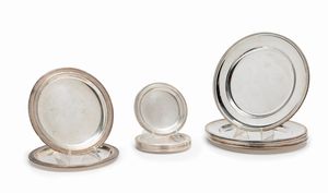 in argento, Peso kg 1,480 cm 10,00-15,00-19,00 Italia, XX Secolo lisci, sei con decoro Impero e otto con decoro [..]
