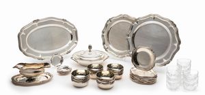 in argento 800 e 925, Peso g 887,00 cm 8,00x9,00-16,50x16,50-19,00x23,50 h cm 5,50x13,00 Italia, XX secolo composto [..]