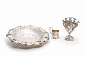 in argento, Peso g 545,00 h cm 15,00-17,00 Italia, XX secolo con decoro a torchon.