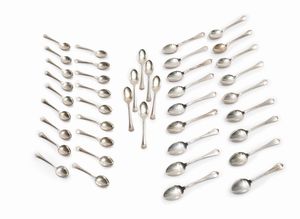 in argento, Peso g 780,00 Italia, XX Secolo composto da 42 cucchiaini di differenti misure.