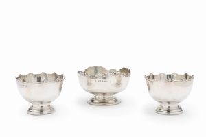in argento, Peso g 399,0 cm 8,00x12,50-8,00x10,50-8,00x10,50 Inghilterra, XX secolo con bordo polilobato, difetti [..]