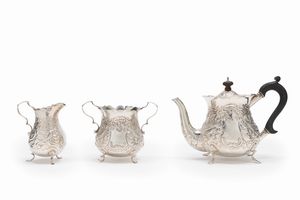 in argento, Peso totale kg 2,434 (comprensivo degli inserti non in argento) Londra, 1900 composto da 13 pezzi: [..]