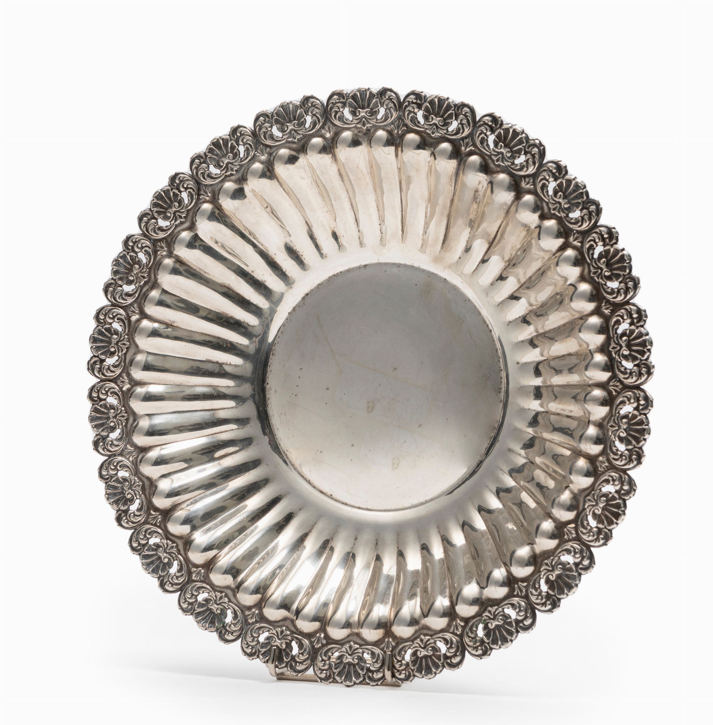 Italia, XX Secolo di forma tonda, corpo a baccellature, profilo con decoro a rilievo, poggiante su tre piedini.