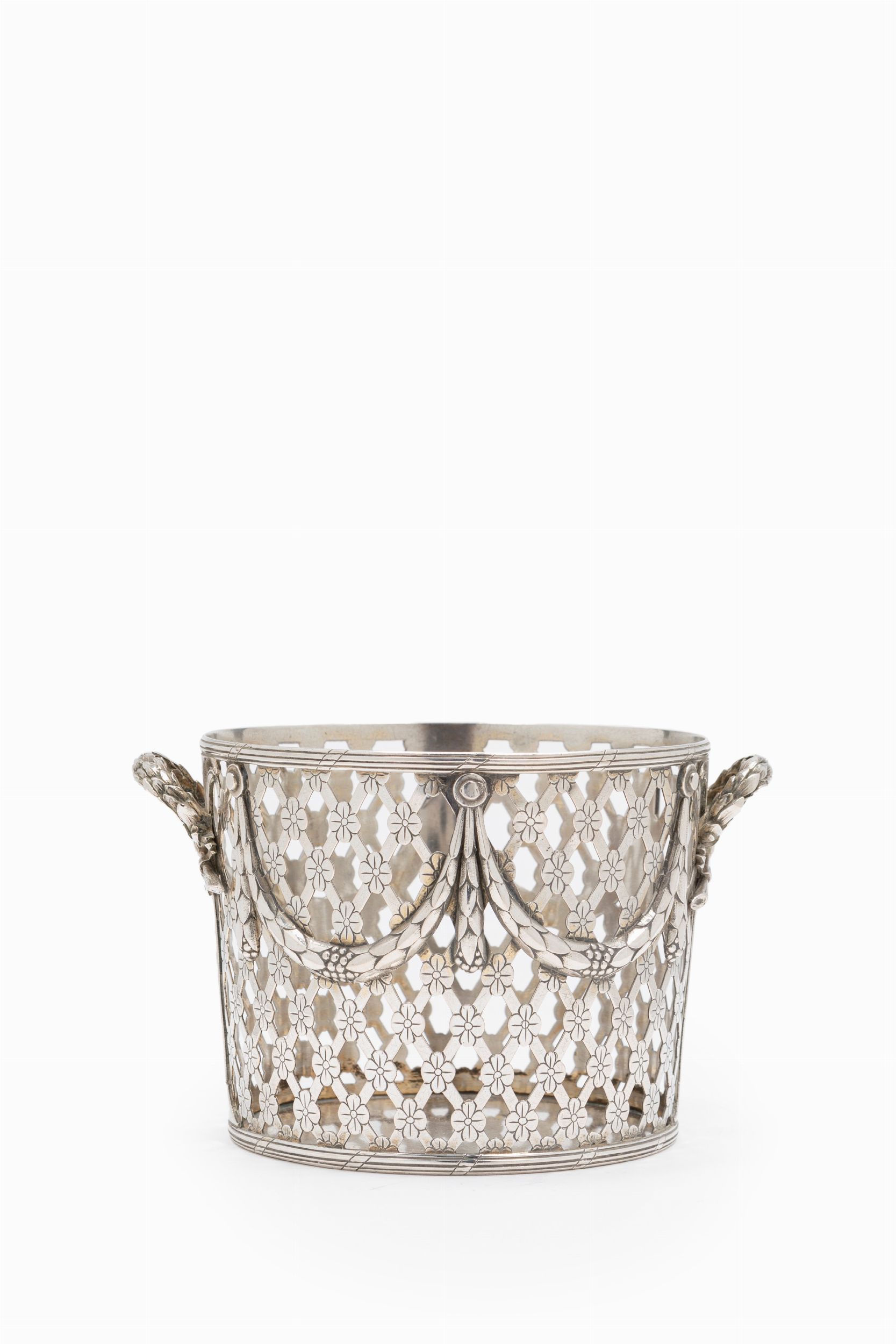 XIX Secolo di forma rotonda interamente traforato, decoro floreale inciso e motivi a festoni.