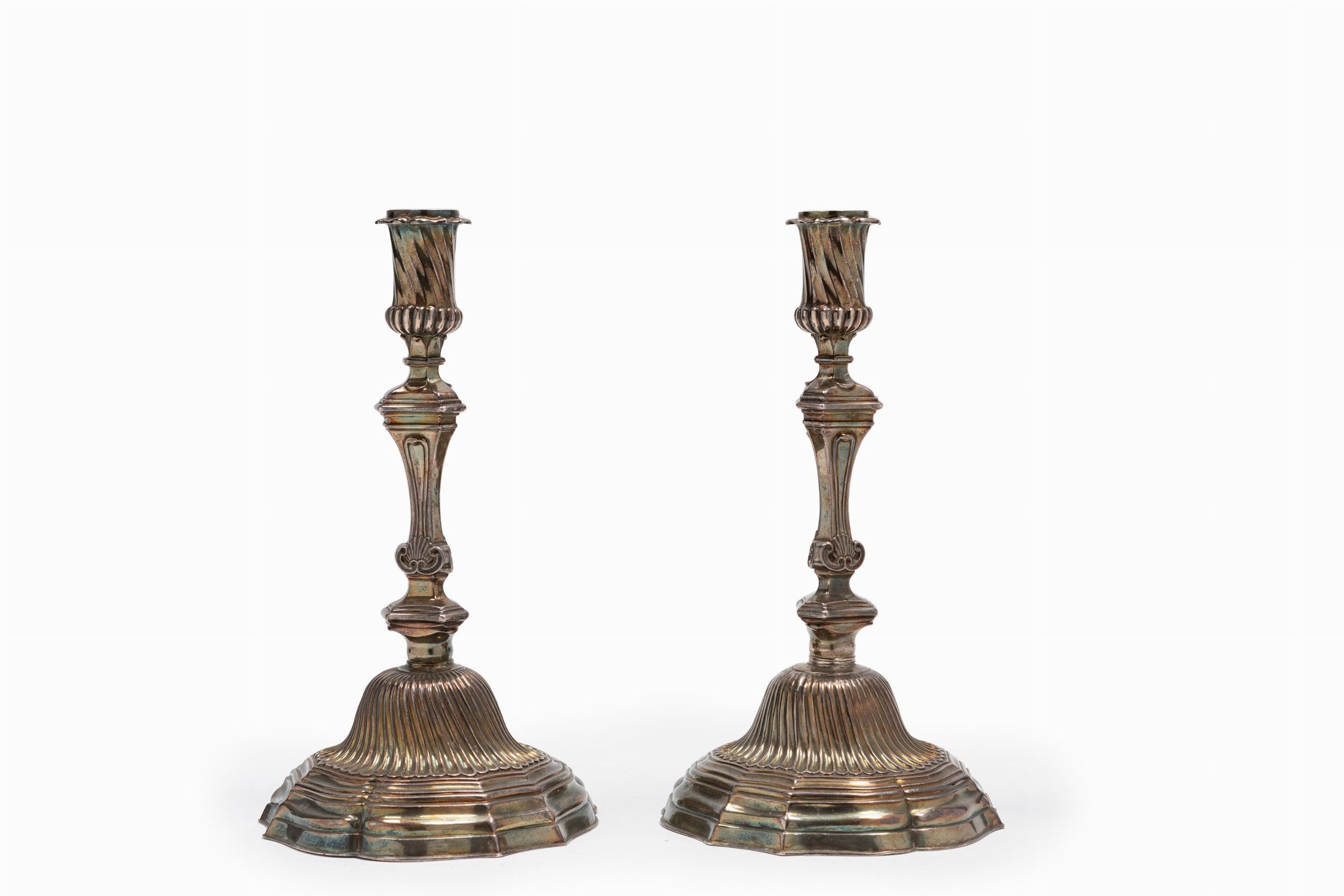 Francia, fine XVIII Secolo base circolare, decoro sbalzato, fusto con decori a conchiglia, difetti.