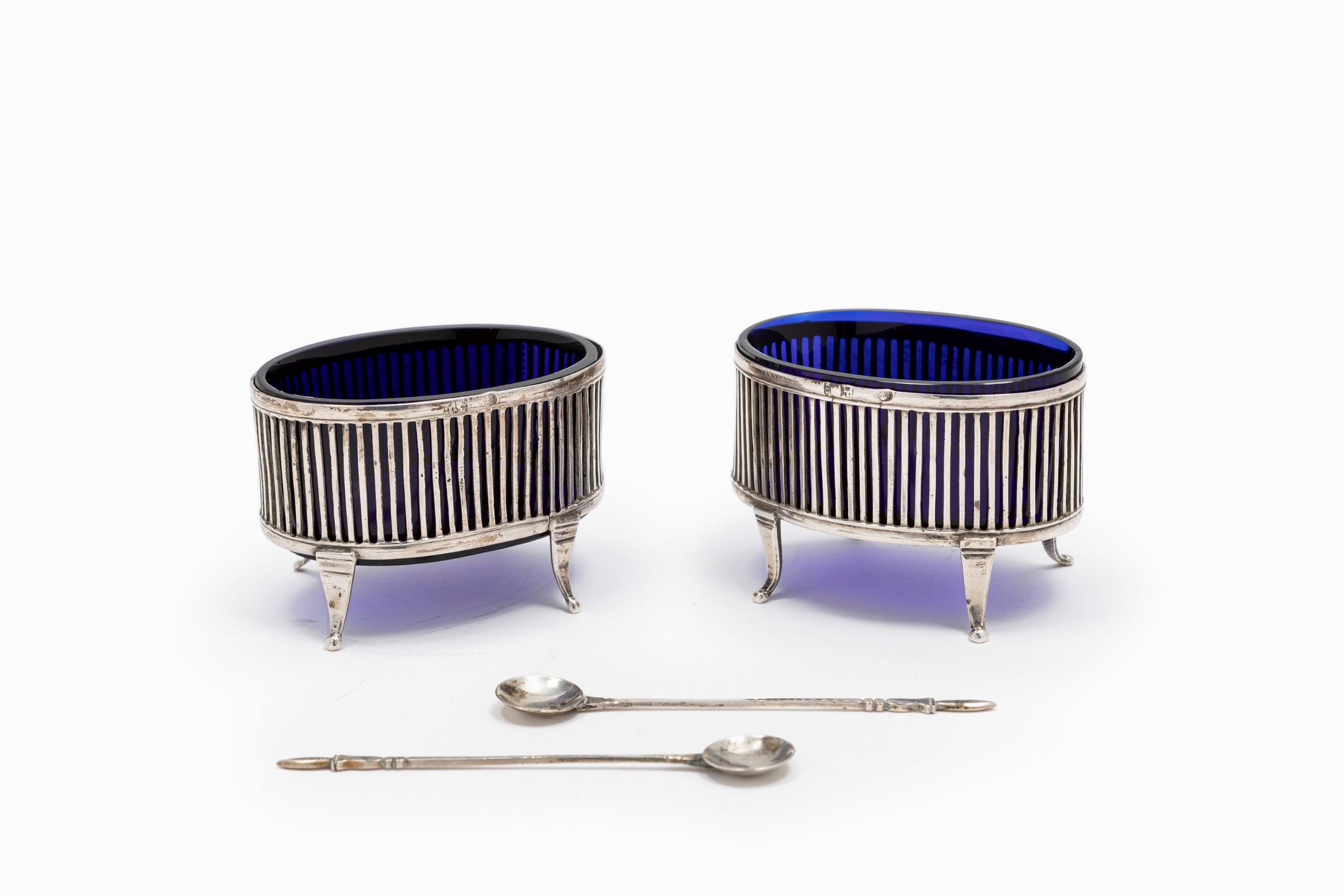 Francia, inizi XIX Secolo di forma ovale, decoro a griglia con cucchiaini e vetri blu
