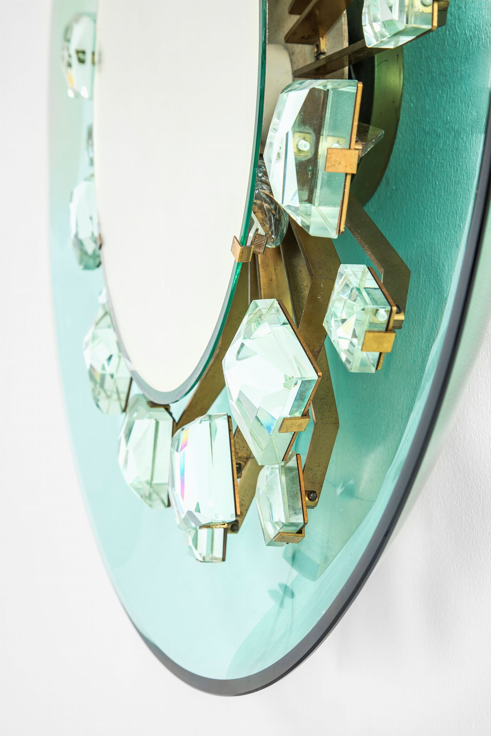 Largh. 14,5 - Alt. 75 Cm Struttura in vetro e ottone. Cornice in cristallo colorato curvato molato ed elementi a diamante in cristallo colorato specchiato molato di forte spessore. Proveniente da una collezione privata - Torino Prod. Fontana Arte, Italia, 1960 ca.