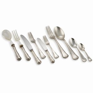 SERVITO DI POSATE, ALESSANDRIA, SECOLO XX in argento, manici sagomati, composto di settantasei pezzi, complessivi [..]