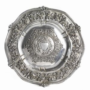 PIATTO DA PARATA, TORINO, SECONDA METÀ SECOLO XVIII, SAGGIATORE GIUSEPPE VERNONI in argento di forma circolare [..]