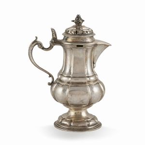 CAFFETTIERA, NAPOLI, 1835 CIRCA in argento, piede circolare profilato da palmette, beccuccio con finale zoomorfo, [..]