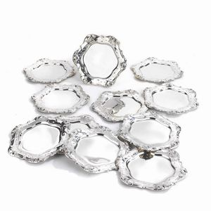 UNDICI PIATTINI DA PANE, SECOLO XX in argento sterling, con bordi sagomati, diam. cm 18, complessivi g 1660 [..]