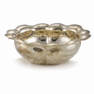 LEGUMIERA, MILANO SECOLO XX, ARGENTIERE MIRACOLI di forma circolare con profilo baccellato, diam. cm 27,5, g 1475 [..]