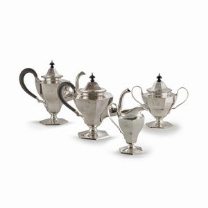 SERVITO DA TÈ E CAFFÈ, STATI UNITI SECOLO XX, ARGENTIERE DUHME E CO in argento sterling, composto [..]