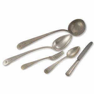 SERVITO DI POSATE, FIRENZE, SECOLO XIX, ARGENTIERE GUADAGNI in argento, manici con finali decorati da monogramma [..]