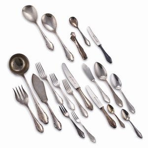 SERVITO DI POSATE, VIENNA, 1910 CIRCA, MANIFATTURA KLINKOSCH manici decorati da fiocchi, composto di centocinquantuno [..]