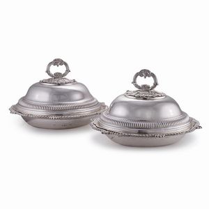 COPPIA DI LEGUMIERE, LONDRA, 1836, ARGENTIERE JAMES CHARLES EDINGTON, COPERCHIO LONDRA, 1818, ARGENTIERE JOHN [..]