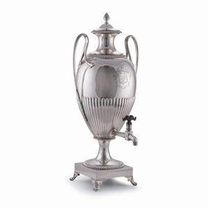 GRANDE CAFFETTIERA, TORINO, 1814 CIRCA, ARGENTIERE LUIGI DE GIORGIS corpo piriforme poggiante su tre alti sostegni [..]