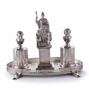 CALAMAIO, ROMA, INIZI SECOLO XIX, ARGENTIERE VINCENZO BELLI II base ovaele poggiante su quattro piedini realizzati [..]