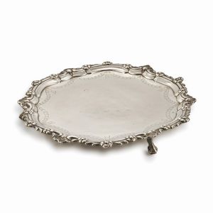 GRANDE SALVER, EDINBURGO, 1839, ARGENTIERE, JAMES HOWDEN & CO in argento di forma circolare poggiante su quattro [..]