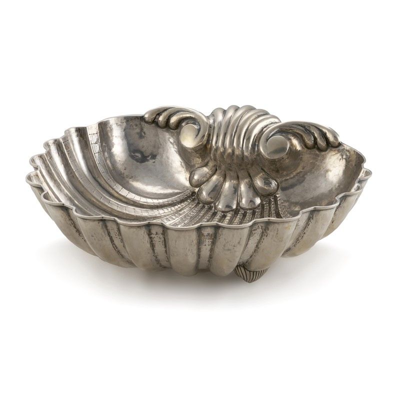 in argento realizzato in forma di conchiglia, diam. cm 27, g 680