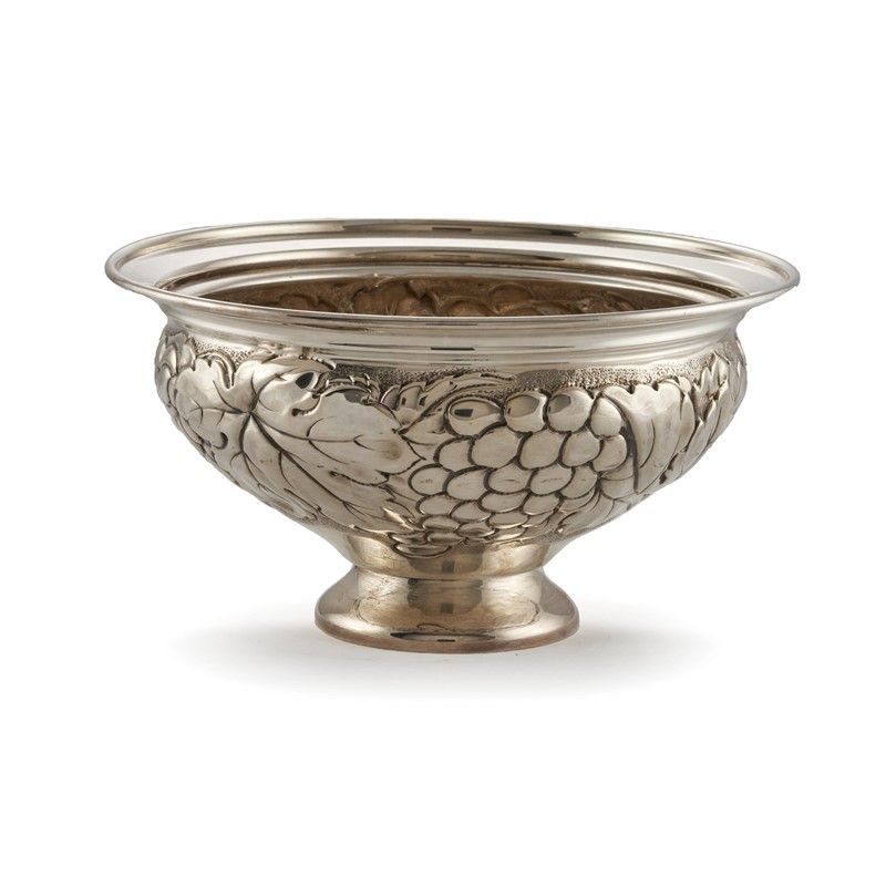 in argento sbalzato a foglie di vite, diam. cm 21, g 380