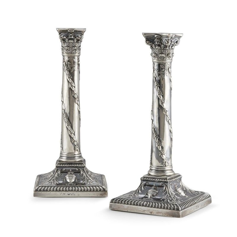 COPPIA DI CANDELIERI, LONDRA, 1896, ARGENTIERE THOMAS BRADBURY & SONS