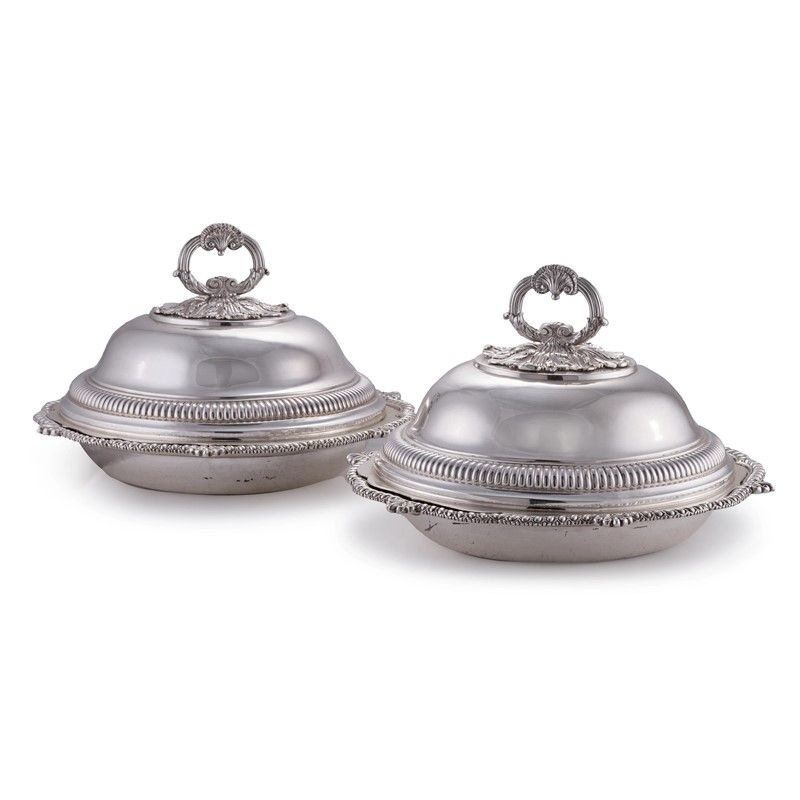 COPPIA DI LEGUMIERE, LONDRA, 1836, ARGENTIERE JAMES CHARLES EDINGTON, COPERCHIO LONDRA, 1818, ARGENTIERE JOHN HARRIS IV
