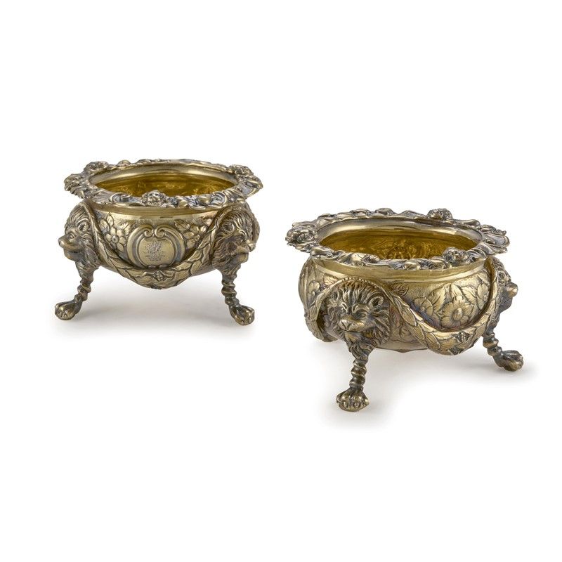 PAIR OF SILVER GILDED SALT CELLAR, LONDRA, 1818, MARK OF PAUL STORR