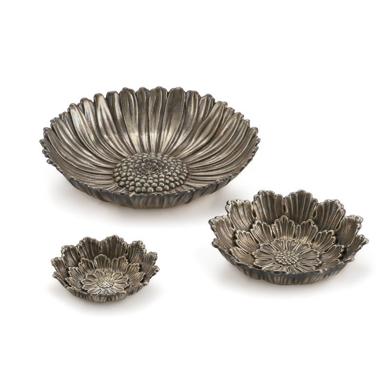 in argento sterling realizzate come corolle di fiori, diam. cm 11,5 e cm 8, complessivi g 145