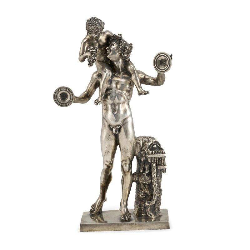 in argento raffigurante Bacco con Satiro, alt. cm 32, g 2700