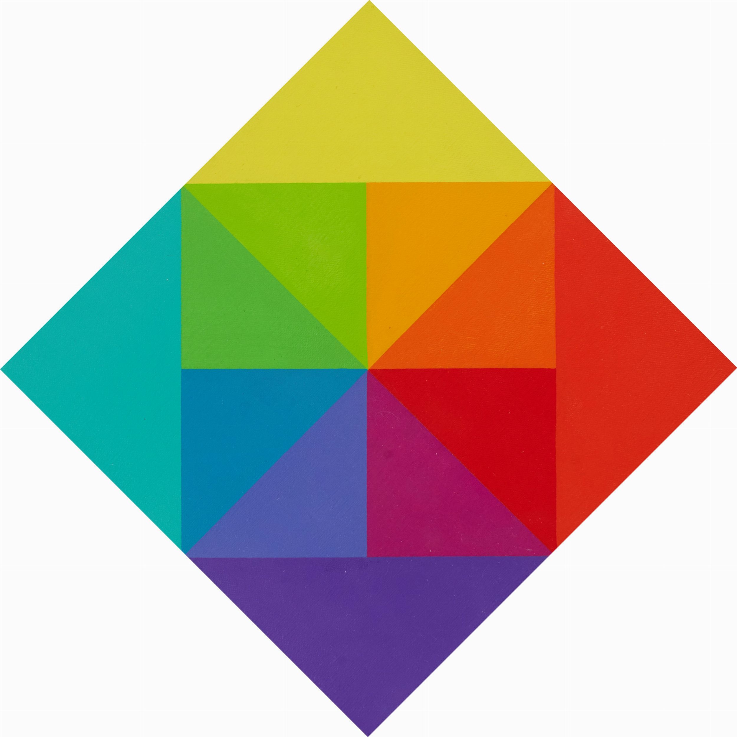 Acrilico su tela romboidale, cm. 42x42x2 (lato cm. 30), in teca di plexiglas