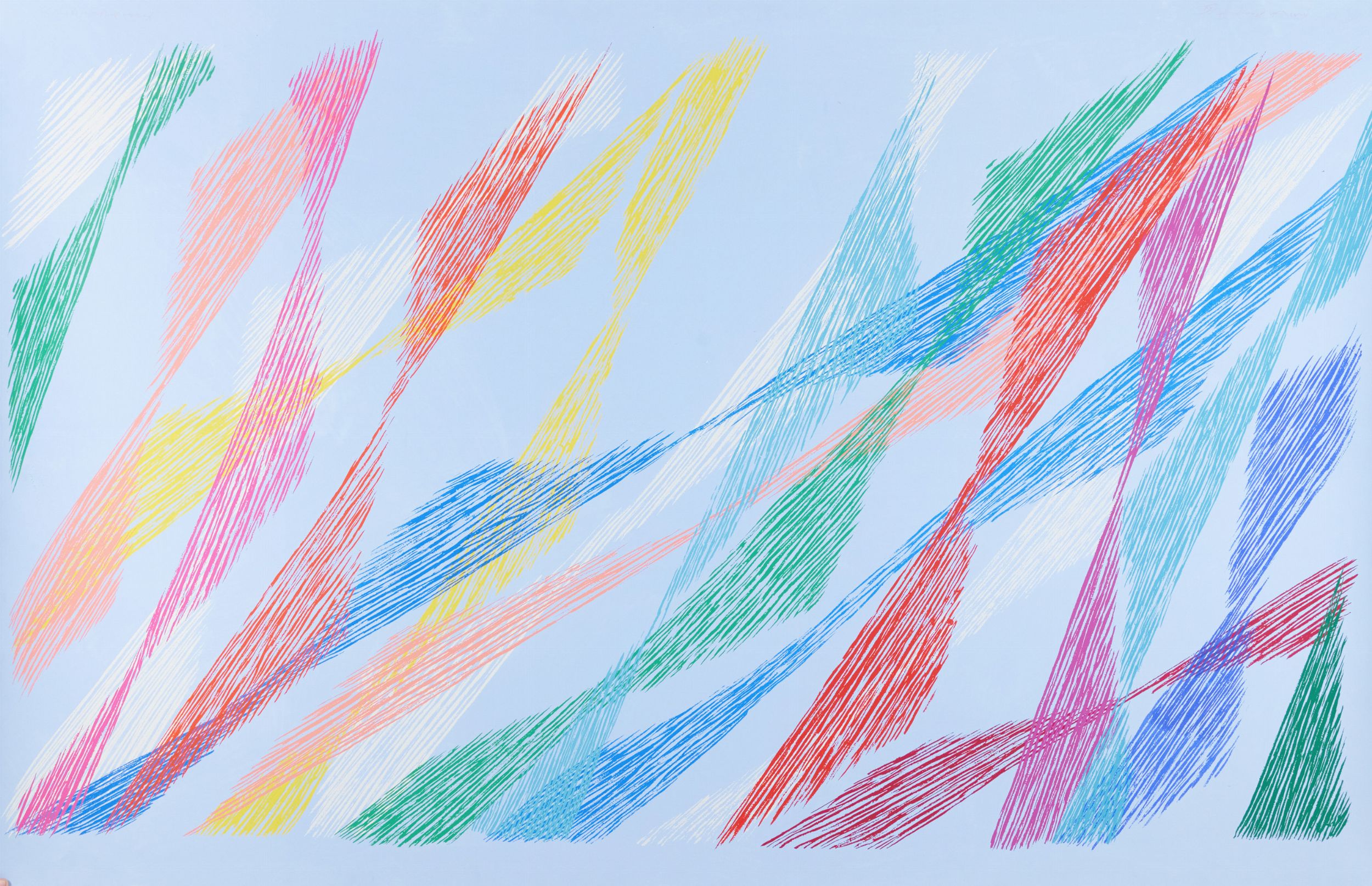 Serigrafia su carta a mano con fondo dipinto, cm. 124x193