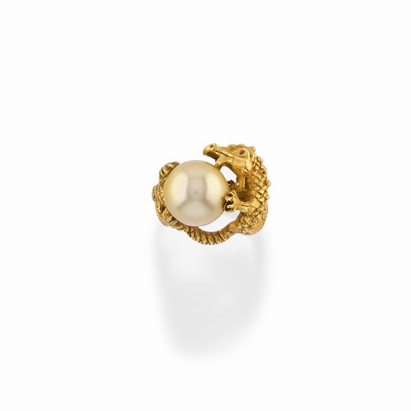 a forma di coccodrillo con perla coltivata di mm 11,00 circa.