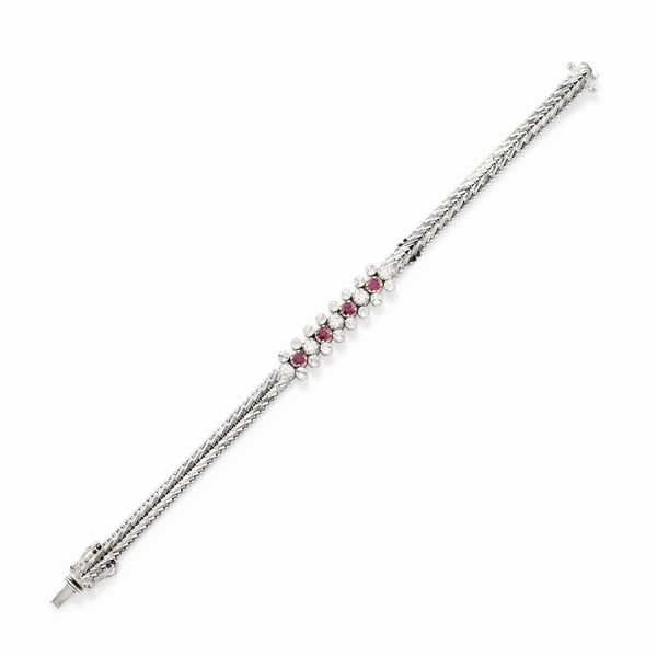 al centro motivo a fiori con rubini taglio rotondo e diamanti taglio brillante.