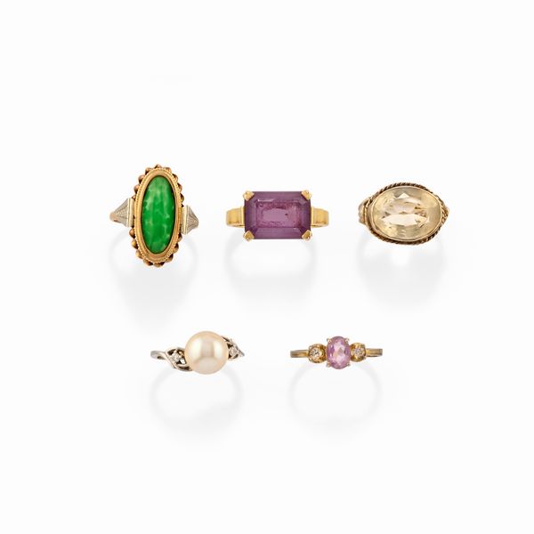 Cinque anelli con pietre colorate