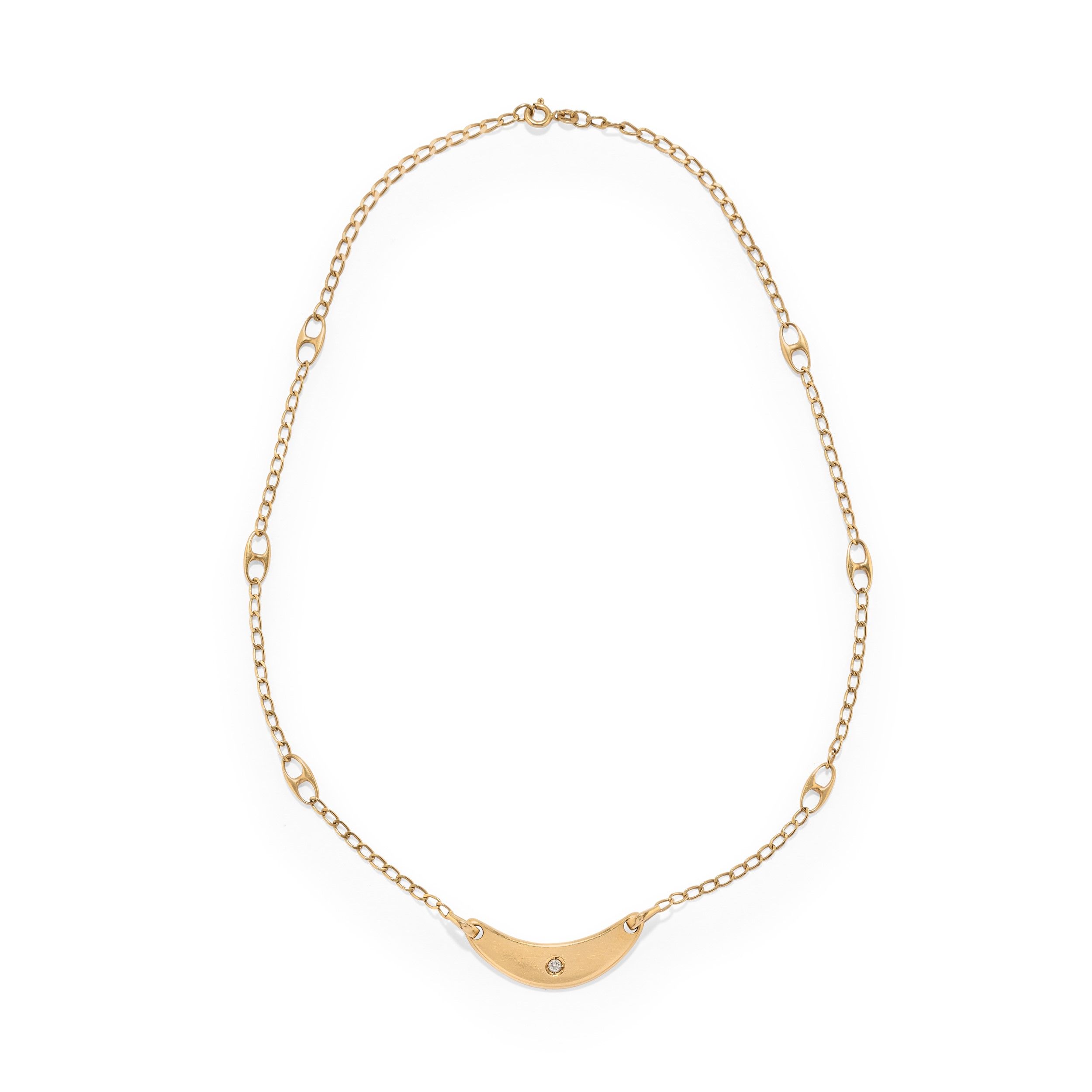 centrale a mezza luna con diamante taglio brillante.