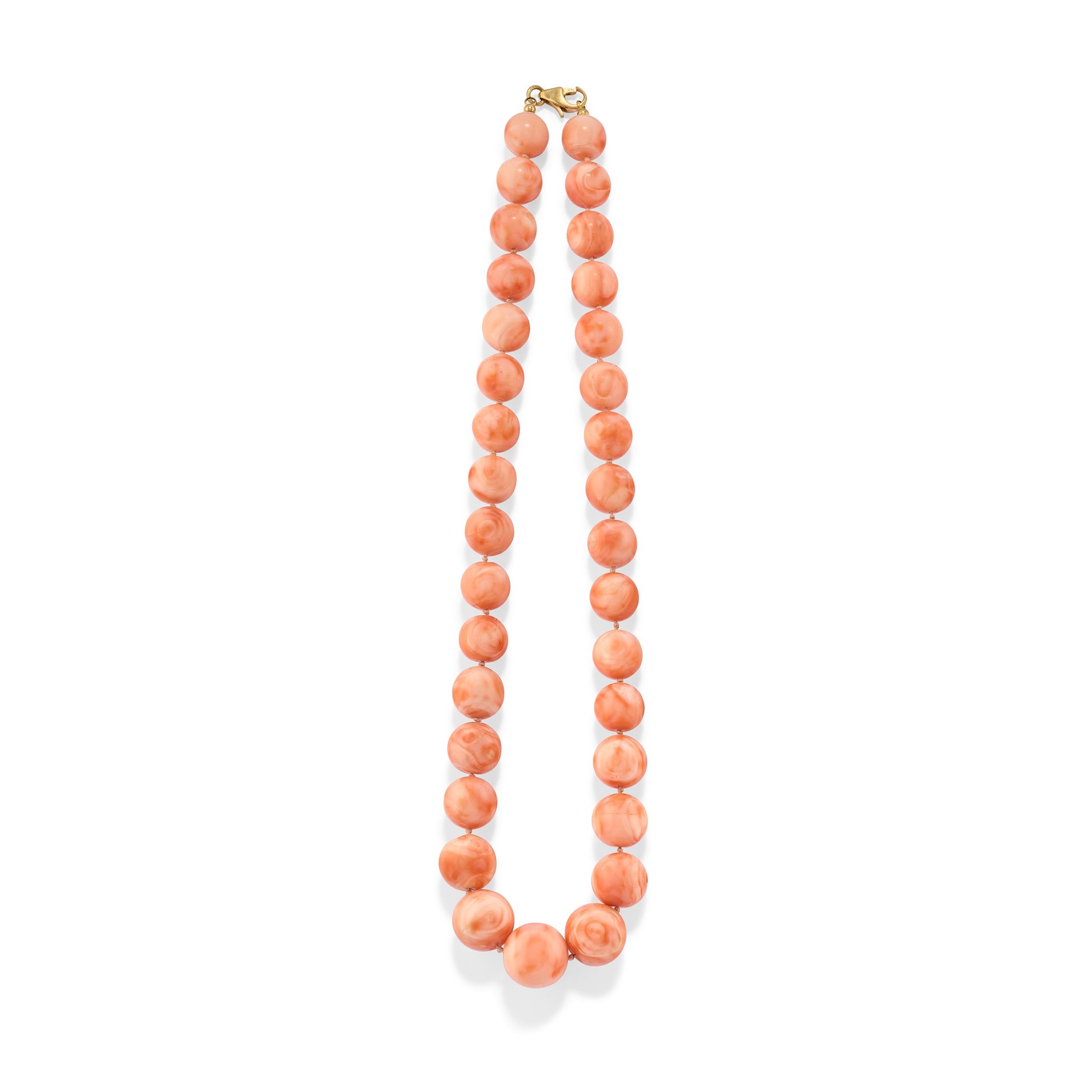 ad un filo di boules di corallo Deep Sea disposte a degradé dal centro da mm 17,00/12,00 circa.