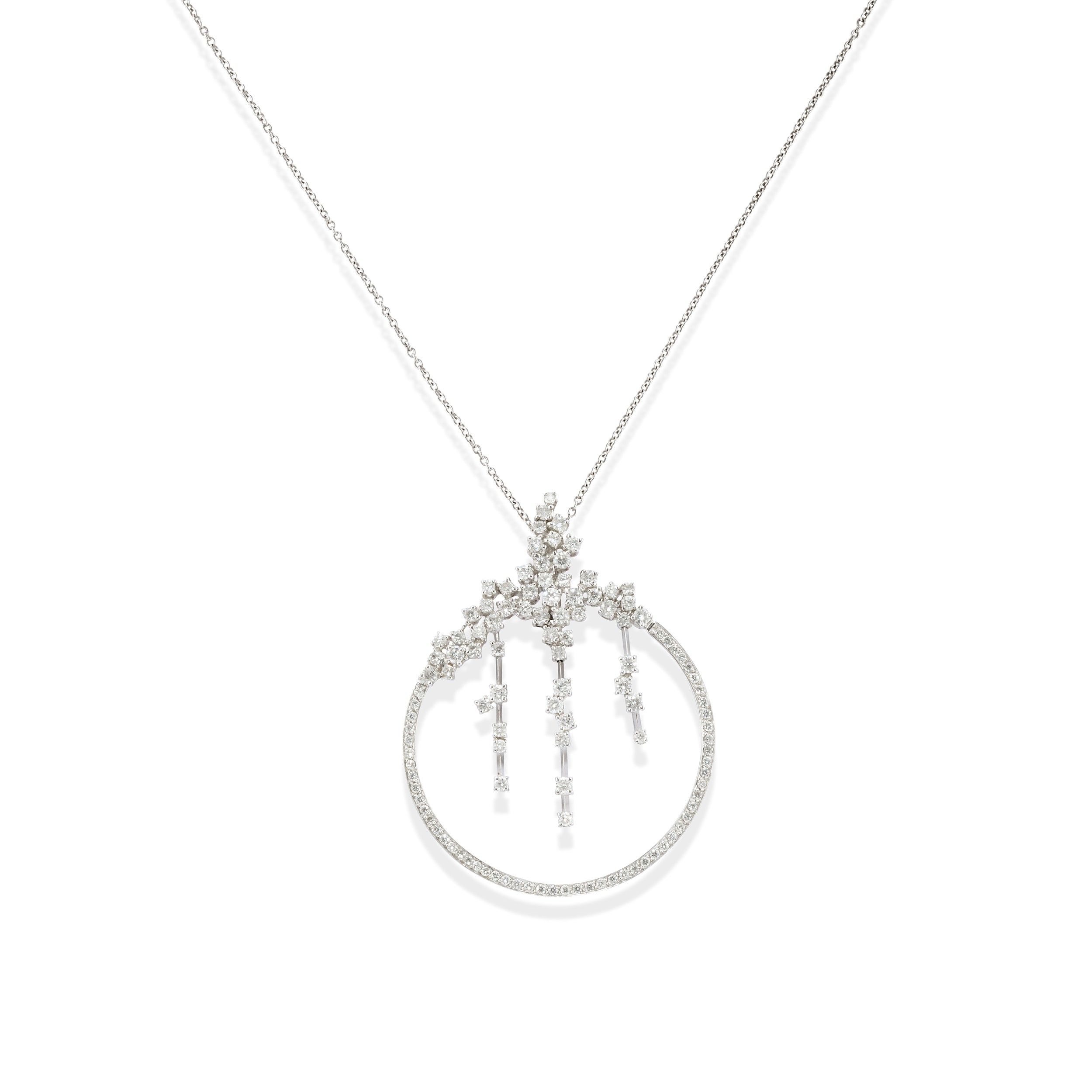 con pendente impreziosito da diamanti taglio brillante per totale ct 2,50 circa.