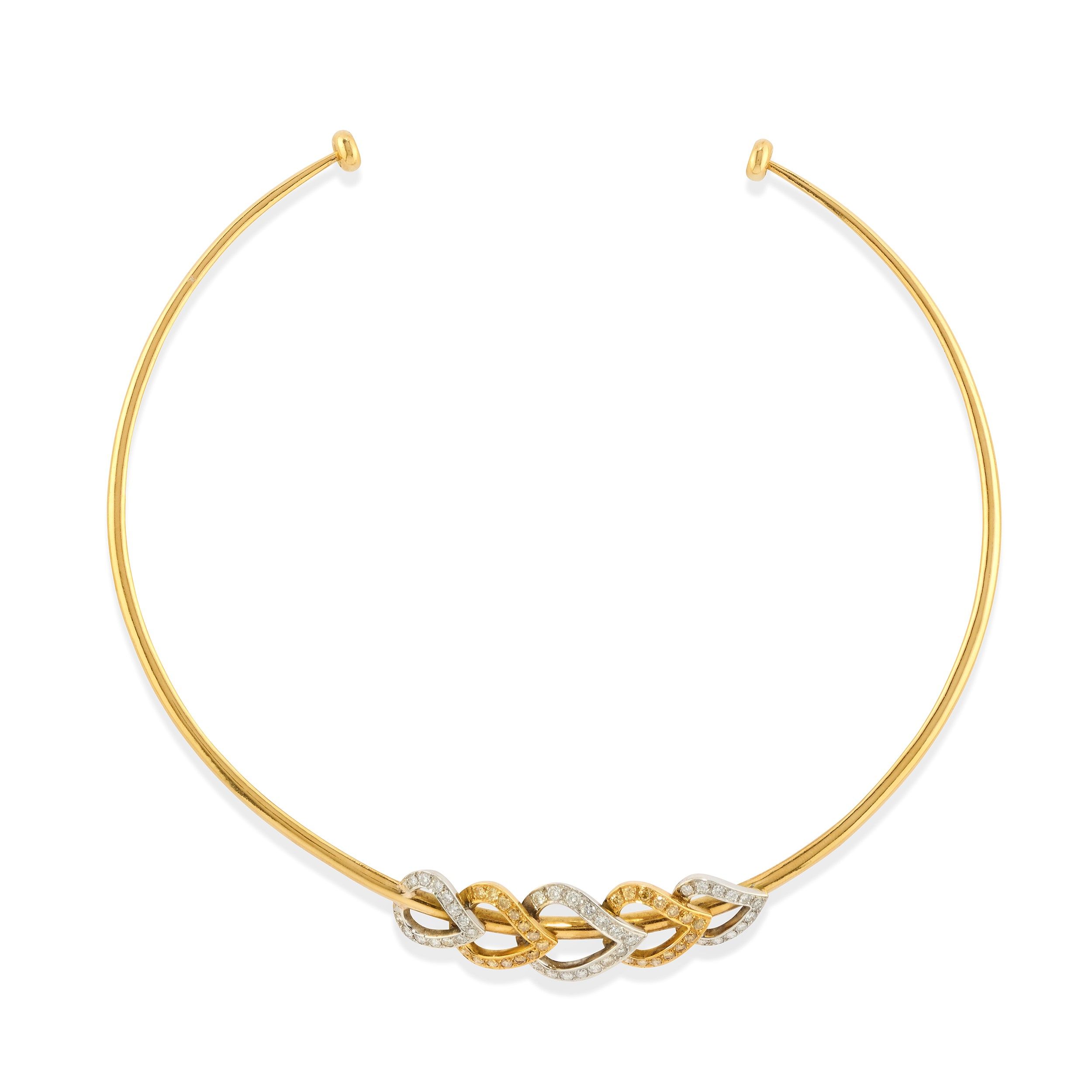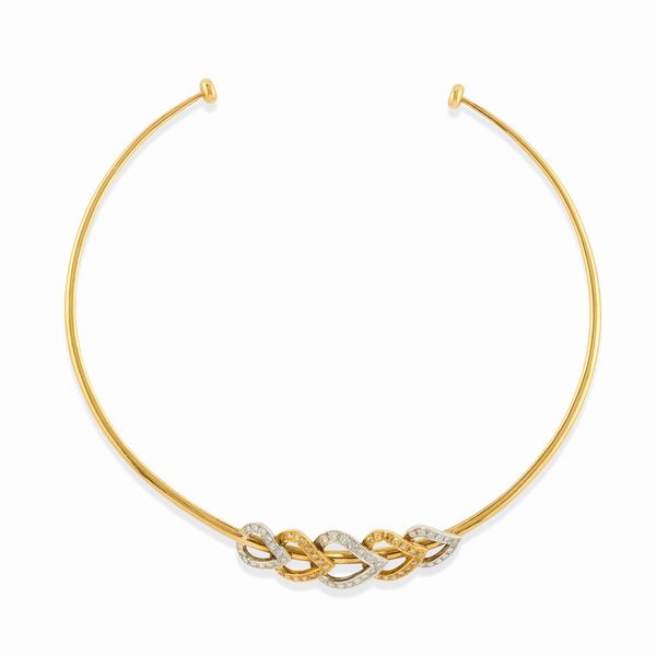 rigida con decoro a gocce impreziosite da diamanti incolori e gialli taglio brillante per totale ct 2,00 circa.